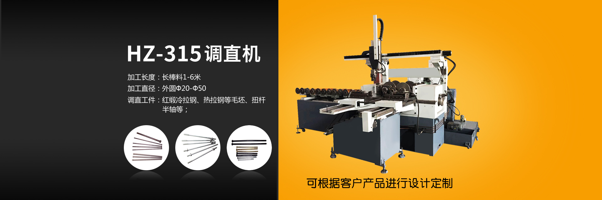 調直機專用于圓棒料毛坯或熱處理變形材料,通過雙曲線原理進行擠壓達到調直效果。